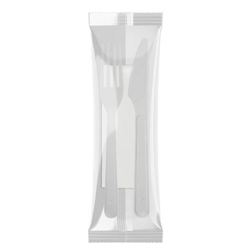 CONJUNTO GARFO/FACA/GUARDANAPO BRANCO CX 150 UNIDADES PLASTFOOD