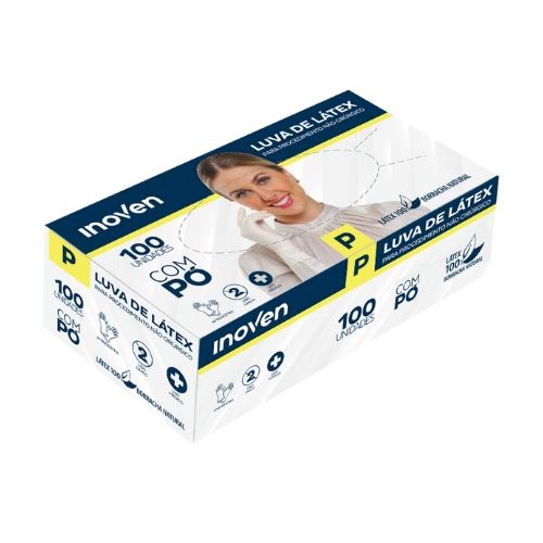 LUVA LATEX TAMANHO P COM 100 UNIDADES ANVISA COM PO INOVEN