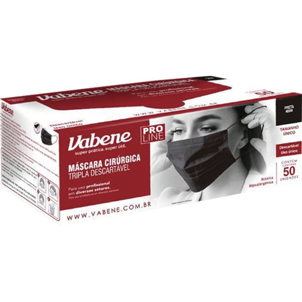 MASCARA TRIPLA TNT ANVISA 50 UNIDADES PRETA VABENE